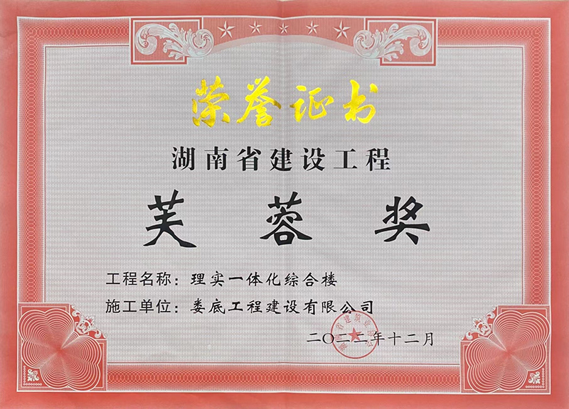 理實(shí)一體化芙蓉獎(jiǎng)榮譽(yù)證書
