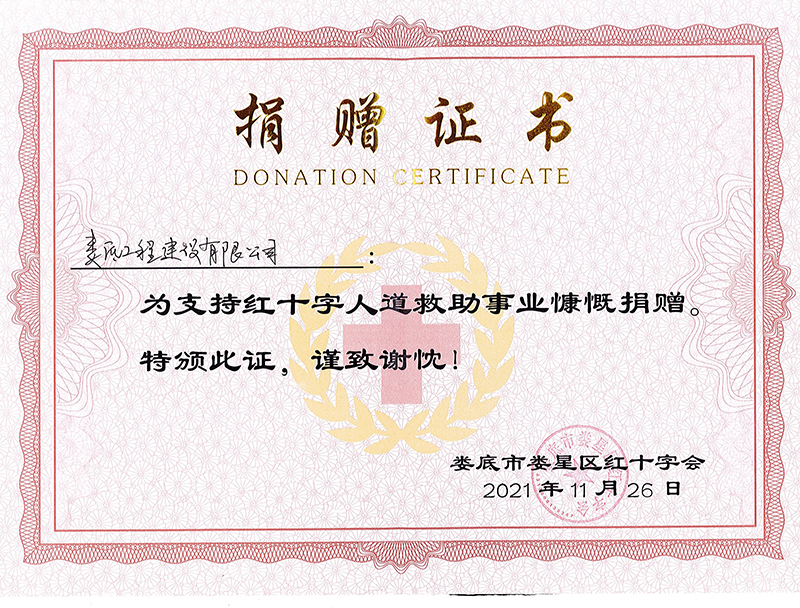 2021年為支持紅十字人道救助事業(yè)捐贈證書