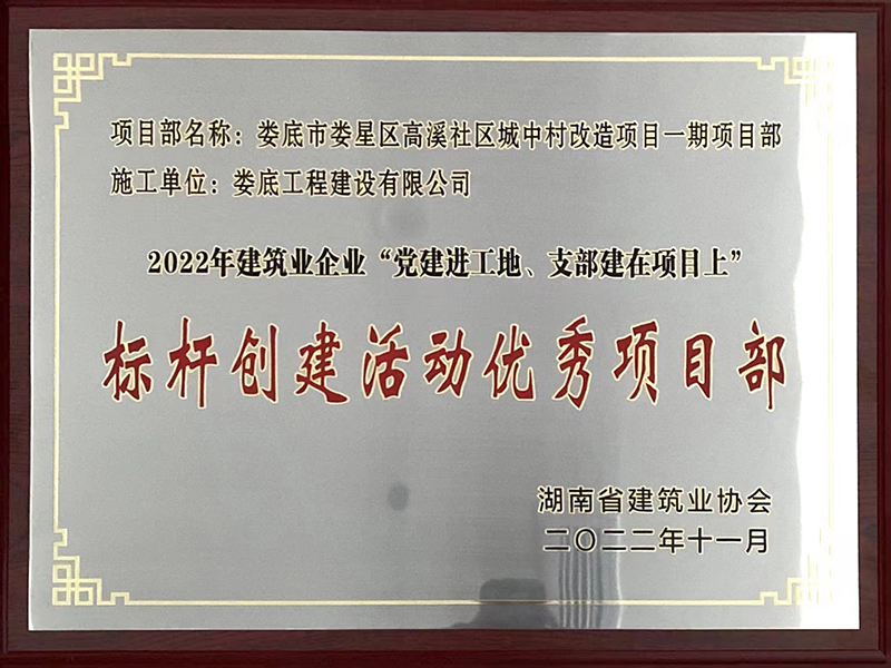 2022年婁底市婁星區(qū)高溪社區(qū)城中村改造項目標(biāo)桿創(chuàng)建優(yōu)秀項目部獎牌