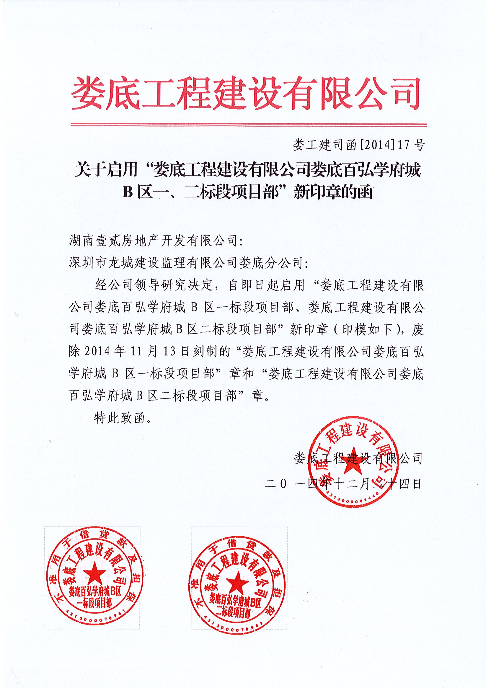 關(guān)于百弘學(xué)府城項(xiàng)目B區(qū)啟用新印章的通告