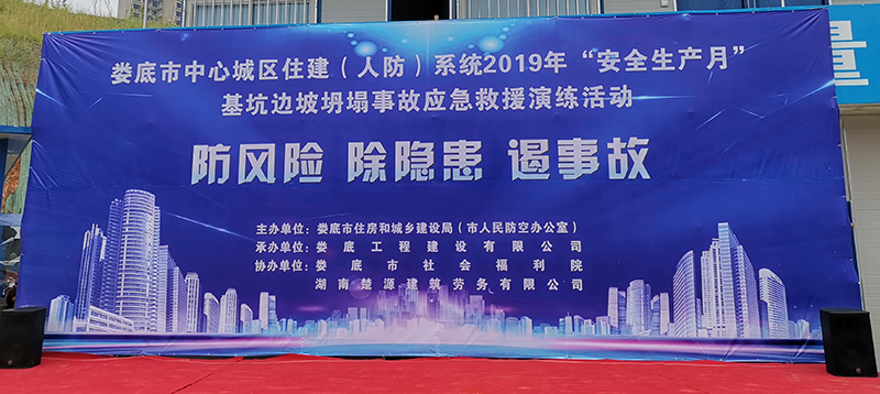 為深入貫徹黨的十九大和十九屆二中、三中全會(huì)精神,認(rèn)真學(xué)習(xí)貫徹習(xí)近平總書(shū)記關(guān)于安全生產(chǎn)的重要論述,為新中國(guó)成立70周年?duì)I造良好的安全生產(chǎn)環(huán)境,積極響應(yīng)省、市關(guān)于2019年“安全生產(chǎn)月”活動(dòng)的有關(guān)文件要求,加強(qiáng)建筑工地應(yīng)對(duì)突發(fā)事件的處理能力,提高全員安全意識(shí),切實(shí)掌握應(yīng)急救援的技能、技巧,讓員工在事故發(fā)生時(shí)將傷害減少到最低。我司特承辦了由婁底市住房和城鄉(xiāng)建設(shè)局(人民防空辦公室)主辦的2019年“安全生產(chǎn)月”“防風(fēng)險(xiǎn)、除隱患、遏事故"建筑施工基坑坍塌事故應(yīng)急救援演練活動(dòng)。