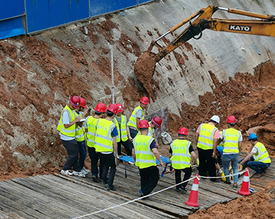 前線搶險(xiǎn)組全體成員對(duì)基坑上方土方進(jìn)行加固后,對(duì)被困人員進(jìn)行施救,救援時(shí)密切關(guān)注塌方土體,防止有二次坍塌的跡象,成功救出被困人員。