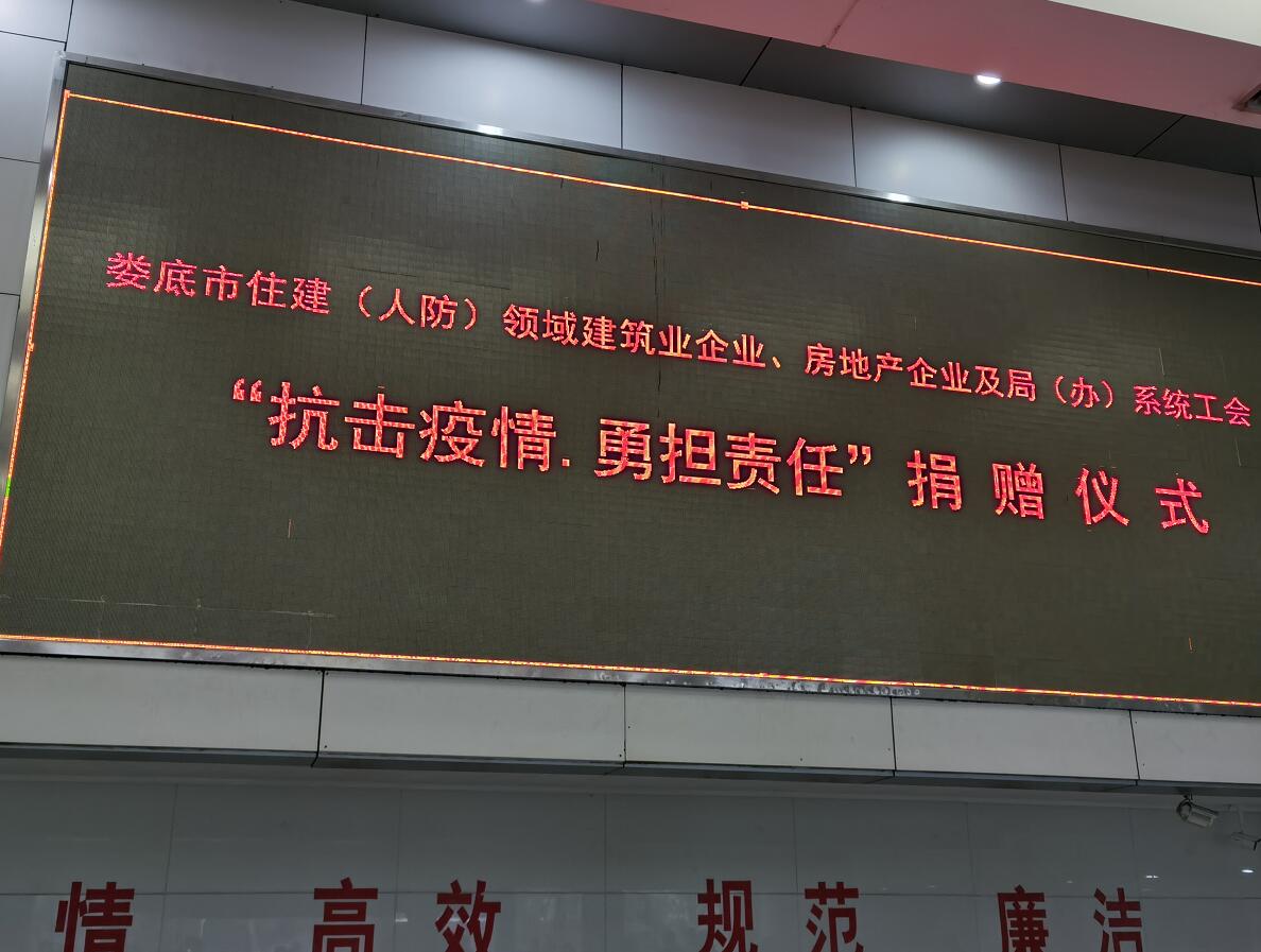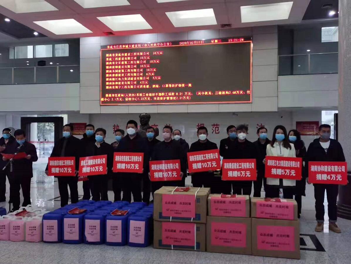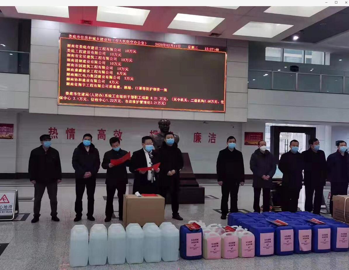 “病毒無情人有情”、“一方有難八方支援”!2020年2月11日,在婁底市住建局(人防辦)組織的市住建(人防)領(lǐng)域建筑業(yè)企業(yè)、房地產(chǎn)企業(yè)及局(辦)系統(tǒng)工會(huì)“抗擊疫情,勇?lián)?zé)任”捐贈(zèng)儀式上,公司總經(jīng)理、法人代表胡勁代表婁底工程建設(shè)有限公司捐贈(zèng)人民幣10萬(wàn)元,為抗擊新冠病毒肺炎疫情盡企業(yè)的一份社會(huì)責(zé)任。公司董事長(zhǎng)張愛慧參加了捐贈(zèng)儀式。