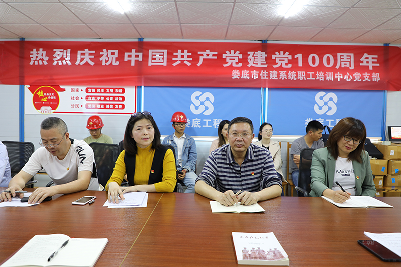 2021年5月25日下午,為慶祝中國共產(chǎn)黨成立100周年,婁底市住建系統(tǒng)培訓(xùn)中心黨支部來到婁底工程建設(shè)有限公司高溪社區(qū)城中村改造工程一期EPC總承包項(xiàng)目部,和項(xiàng)目部臨時(shí)黨支部聯(lián)合開展“憶崢嶸歲月,頌百年華誕”的主題黨日活動(dòng)。2個(gè)支部共有18名黨員參加,其他項(xiàng)目部現(xiàn)場管理人員和工友代表共有30多人參加活動(dòng)。